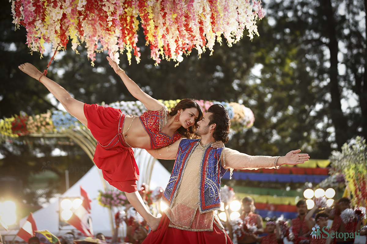 अरुण र आश्मा गीतमा मात्र रहेको निर्देशक प्रदीप भट्टराईले जानकारी दिए । सिनेमामा ‘सुहाउँदो गीत भएकाले राखिएको हो । यसलाई हामीले प्रचार प्रसारका लागि तयार गरेका हौँ’, निर्देशक भट्टराईले भने । एक सय भन्दा बढी कोरस प्रयोग गरेर तयार गरिएको गीतलाई कविराज गहतराजले नृत्य निर्देशन गरेका छन् । ‘पहिला गीत भनेपछि सहजता महसुश गर्दिन थिएँ । तर, अहिले बानि परिसकेको छ । किनकि नृत्यको मेरो आफ्नै शैली छ’, अभिनेता कार्कीले भने । निर्देशक भट्टराईले सिनेमामा मार्फत प्रस्तुत गर्दै आएको भावमै रहेर कथा तयार गरिएको बताए । अर्थात् यसमा हासो र रोदनको मिश्रण छ ।