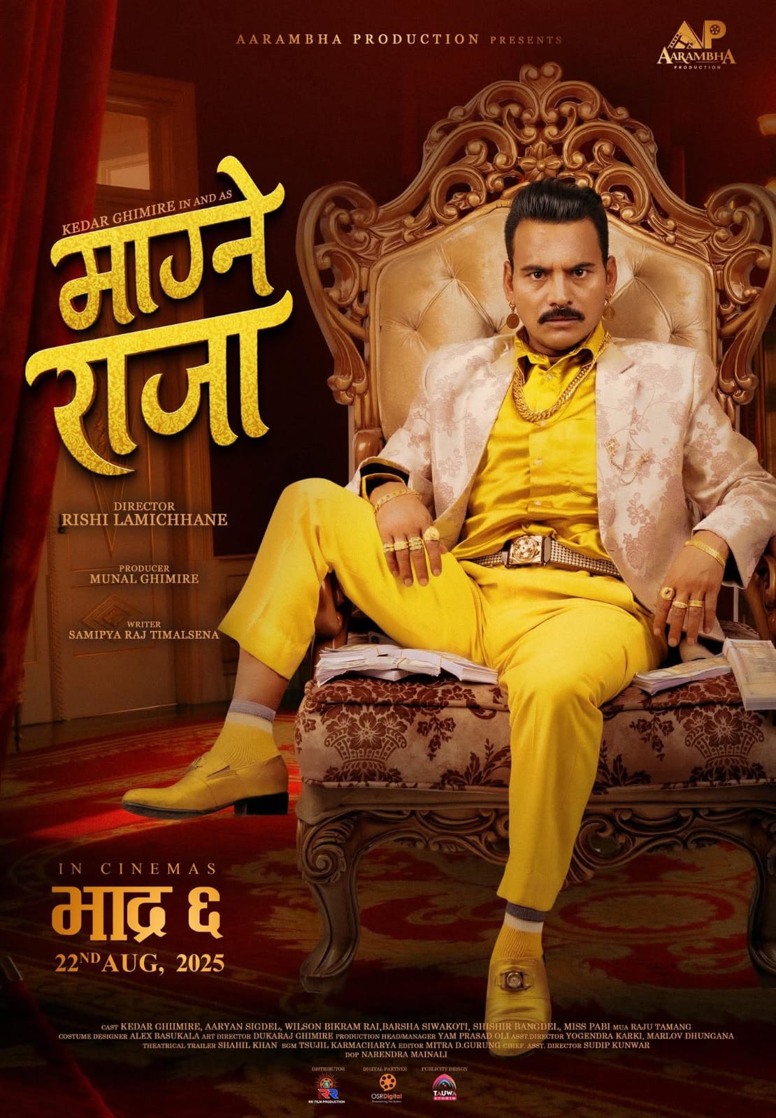 ‘माग्ने राजा’: कमेडी जनराको यो फिल्ममा केदार घिमिरेले पहिलोपटक मुख्य भूमिकामा अभिनय गरेका छन्। आठ वर्षपछि निर्देशनमा फर्किएका ऋषि लामिछाने निर्देशित यो फिल्म एक सामान्य व्यक्तिको धनी बन्ने सपनामा आधारित छ। यसमा वर्षा शिवाकोटी, विल्सनविक्रम राई लगायतका कलाकारहरूको अभिनय रहेको छ।