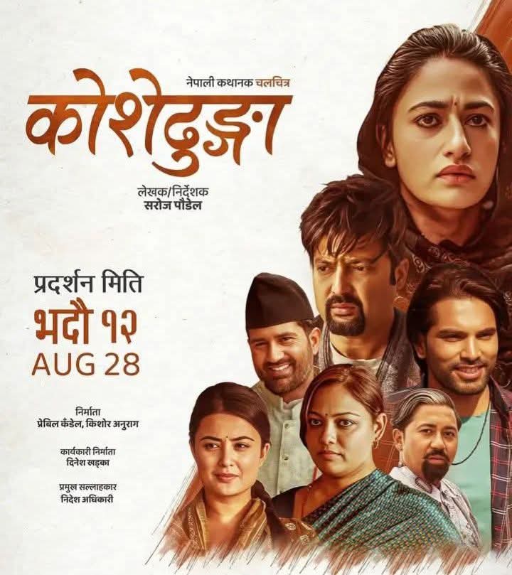 ‘कोशेढुङ्गा’: गत वर्षको हिट फिल्म ‘पूर्णबहादुरको सारङ्गी’ का निर्देशक सरोज पौडेलको यो फिल्म भदौ १२ गते प्रदर्शनमा आउँदै छ। यसको तीज लक्षित गीत ‘नत्र भने जिन्दगी व्यर्थ छ’ निकै चर्चित बनेको छ। आर्यन सिग्देल, सुरक्षा पन्त, ऋचा शर्मा लगायतका कलाकारहरूको यसमा अभिनय रहेको छ।