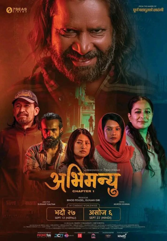 ‘अभिमन्यु: च्याप्टर १’: यो क्राइम जनराको फिल्म हो, जसको कथा पैसाको प्रलोभनले चक्रव्यूहमा फसेको व्यक्तिको संघर्षमा आधारित छ। यसका निर्माता विनोद पौडेल, सर्वाधिक हिट फिल्म ‘पूर्ण बहादुरको सारङ्गी’ का पनि निर्माता हुन्। फिल्मको प्रचारका लागि एआई प्रविधि पनि प्रयोग गरिएको छ।
